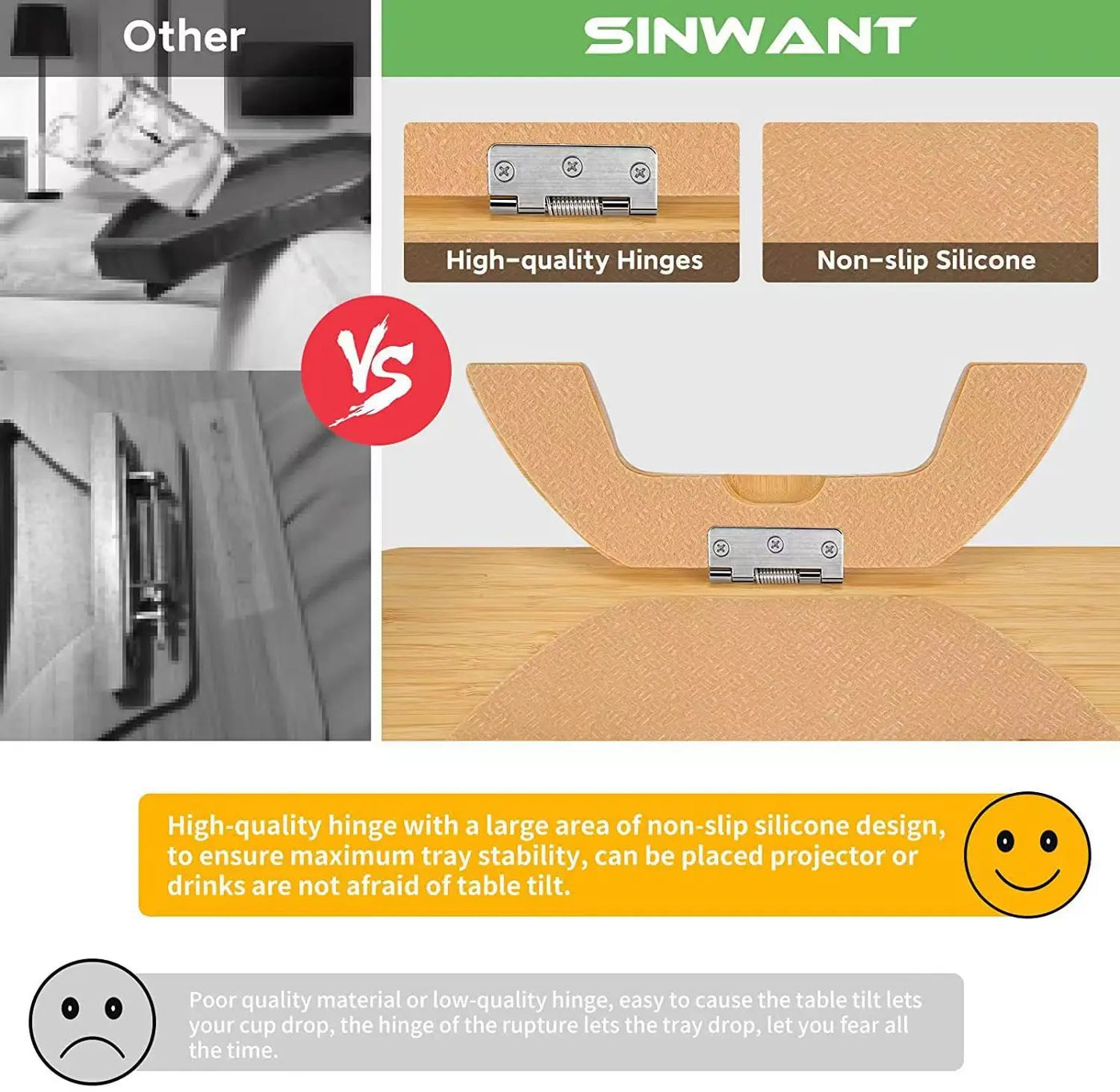 Clips securely onto sofa arm for stable side table use